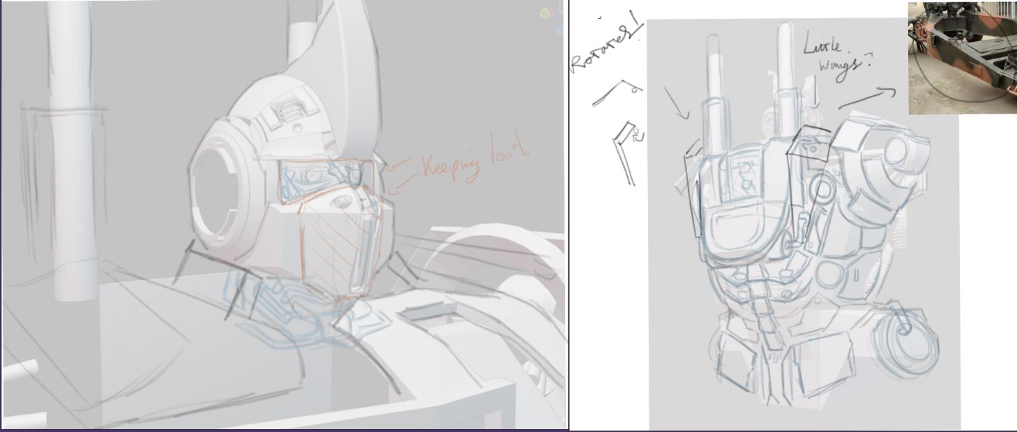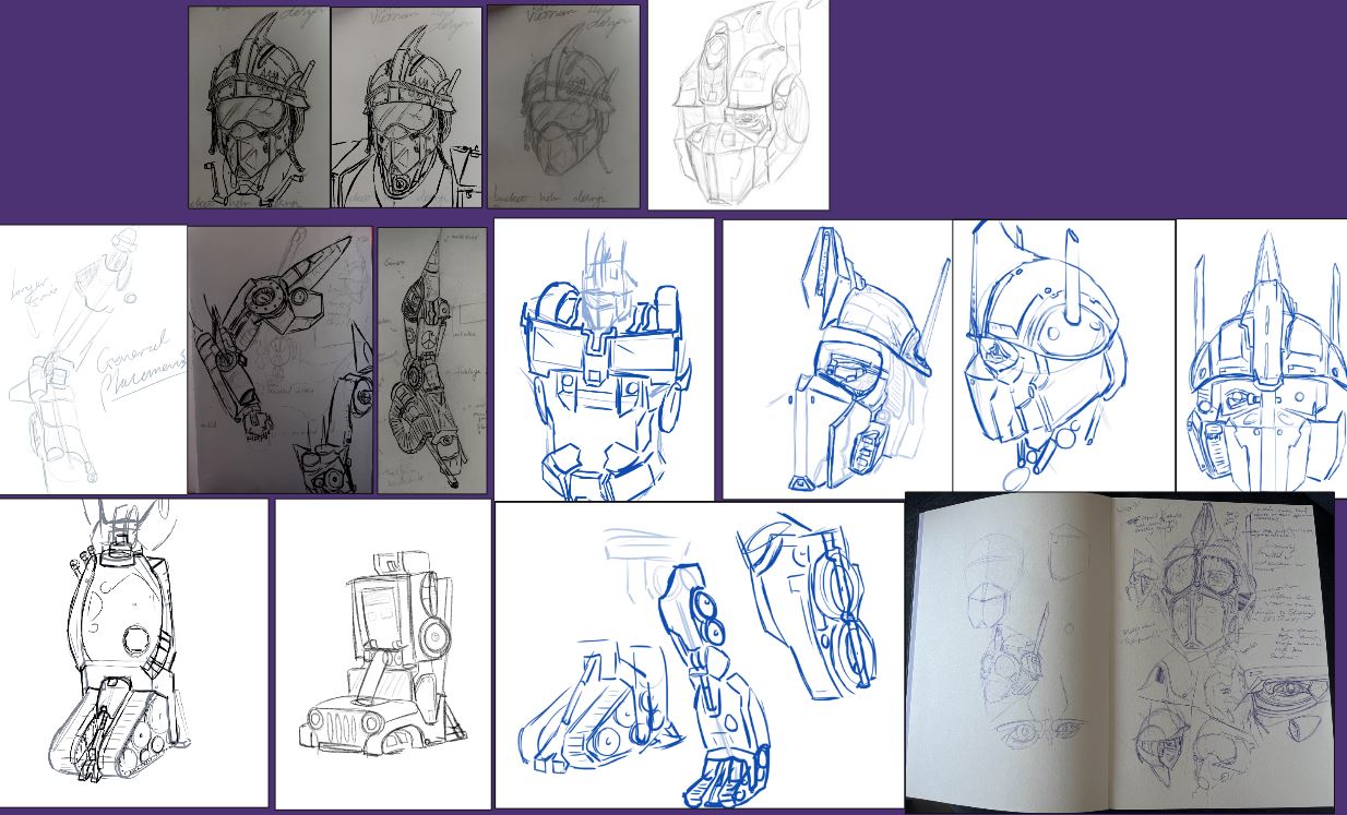 The above here is some earlier 3D concepting I did, which has given me a solid base to create a ton of drawovers. The head sculpt here already bares a great resemblance to the cartoon Bruticus head; Some key features I've yet to figure out.